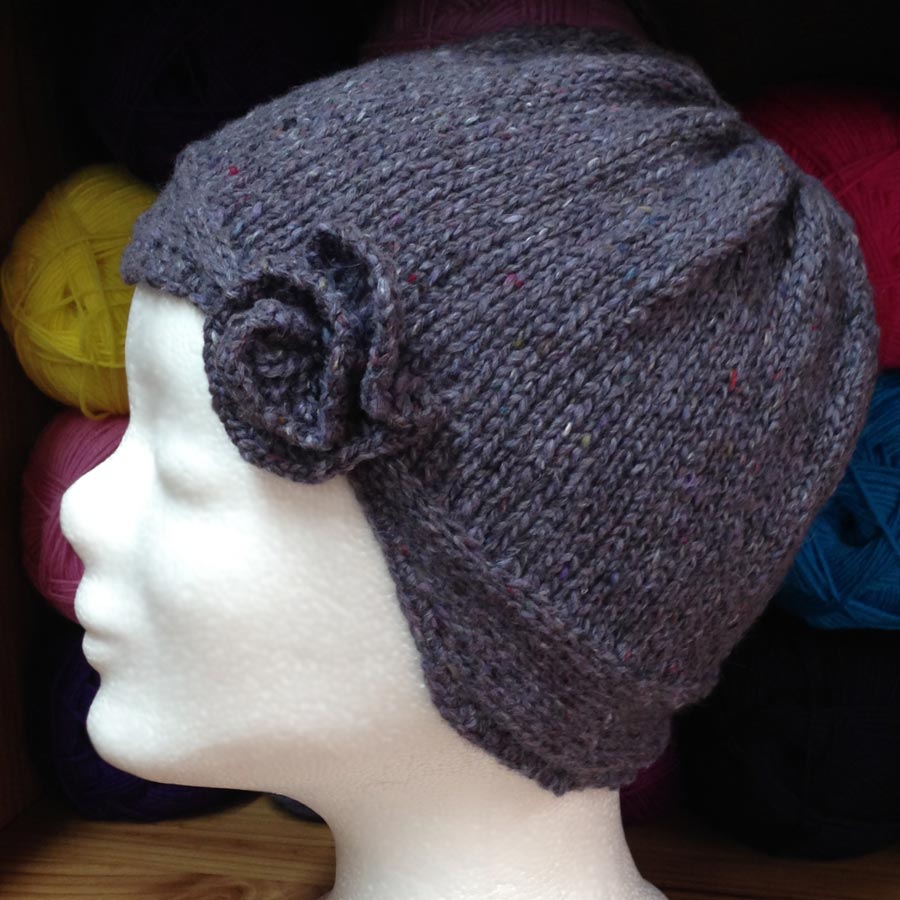 Anleitung für eine romantische Mütze. Warm und dekorativ in der kalten Jahreszeit. Durch die Strickweise kann die Mütze für jede Kopfgröße - auch für Kinder - gestrickt werden. Anleitung mit Strickschrift.