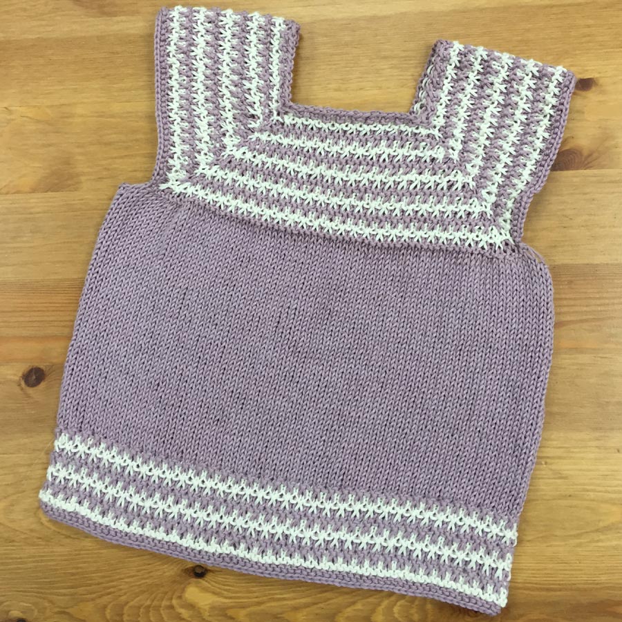 Ein niedliches Top für Babies und Kleinkinder. Das Top *KuschelMonster* wird von oben nach unten gestrickt. Passe und Abschlüsse werden in einem Hebemaschenmuster gestrickt. Anleitung mit Strickschrift.