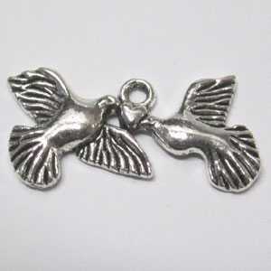 Zwei verliebte Tauben mit Herz aus antik-silberfarbenem Metall - zum Verzieren der handgearbeiteten Stücke.
