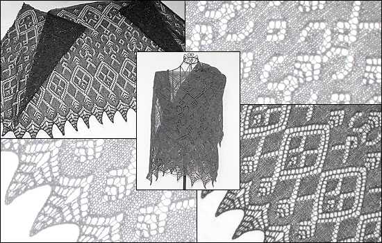 Die Stola *Soraya* ist durchgehend ornamental gemustert. Gestrickt von Birgit FreyerGröße: ca. 80 x 190 cmGarn: Lacegarn KidSetaLace: 70% Mohair, 30% Seide