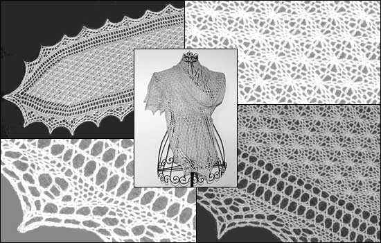 Gestrickter Schal mit Strickspitze *Viola*. Der Schal wird an einem Stück gestrickt. Das Besondere an diesem Schal sind die spitz zulaufenden Enden. Anleitung mit Strickschrift.