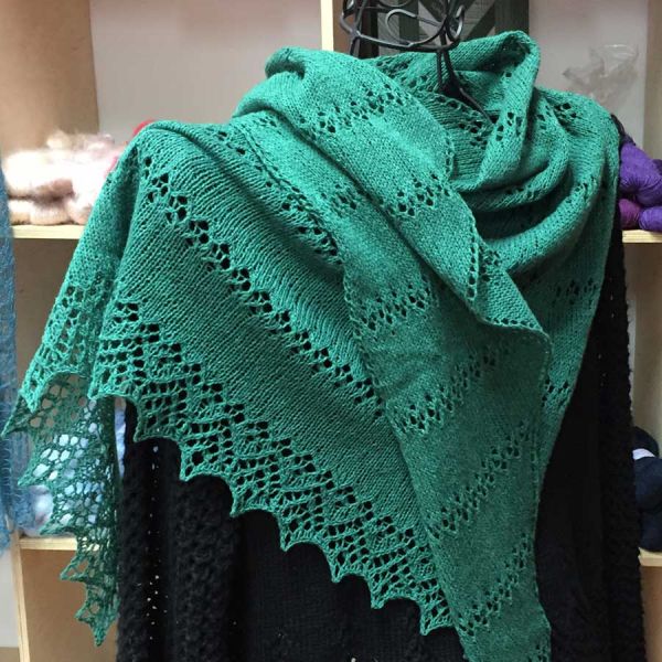 Die *LazyMinna* ist ein langezogenes, asymmetrisches Dreieckstuch und kann beliebig lang gestrickt werden. Glatt rechte Teile und Lochmusterstreifen wechseln sich ab. Das Muster mündet in eine schöne Spitze - einem schönen Blickfang. Strickanleitung. Strickmuster mit Strickschrift.