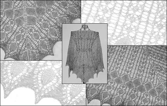 Gestricktes Schultertuch mit Strickpitze *Lindarella*. Strickanleitung mit Strickschrift. Das Tuch wird von der Mitte aus gestrickt. Strickanleitung. Strickmuster mit Strickschrift.