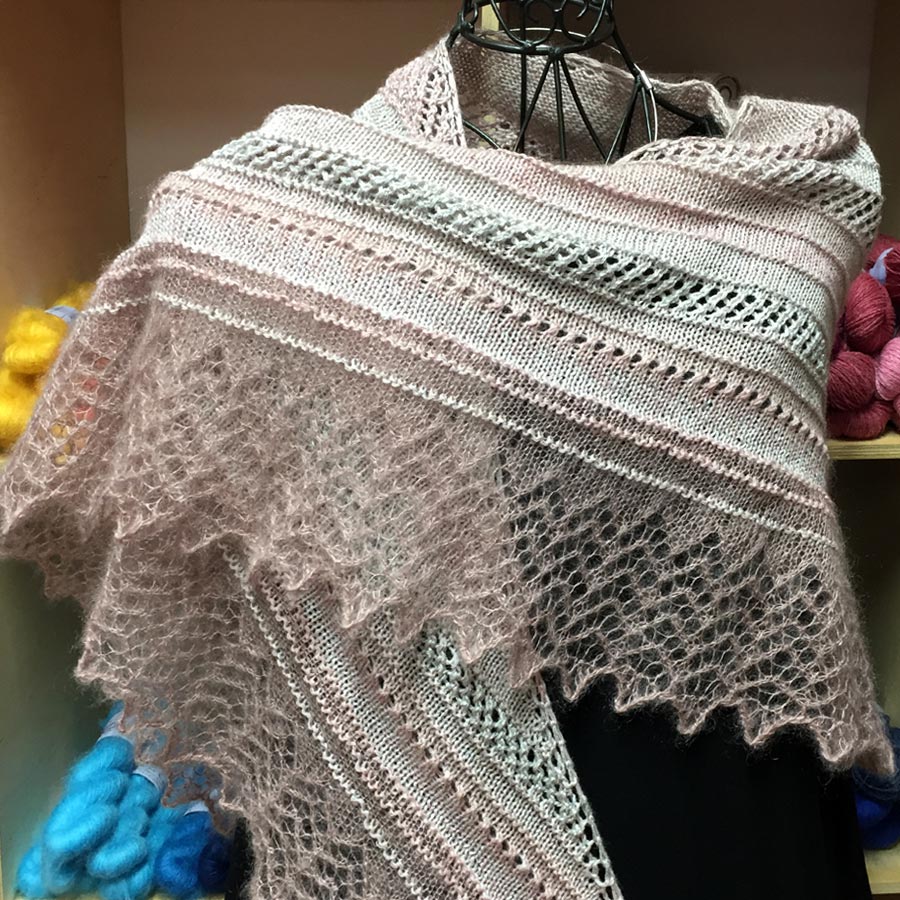 Tuch *Effetto* ist ein einfaches effektvolles Tuch in Bananenform. Die einfachen Lochmusterstreifen und Rippen können nach eigenem Belieben gestrickt werden. Das Tuch kann so lange gestrickt werden, bis die gewünschte Größe erreicht ist. Auch die Strickspitze kann beliebig breit gestrickt werden. Damit ist die Größe des Tuches äußerst variabel. Strickanleitung. Strickmuster mit Strickschrift.