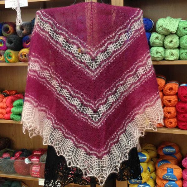 Das Tuch *Paradiso* wird mit 2 Farben gestrickt - kontrastreich oder Ton-in-Ton. Strickanleitung mit Strickschrift.