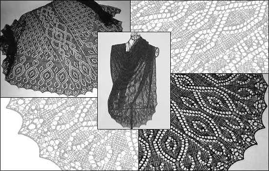 .Das charakteristische Merkmal eines färöischen Schals ist der Zwickel im Rückenteil zwischen zwei dreieckigen Seitenteilen. In den Seitenteilen werden Maschen zugenommen. Der färöische Schal *Melissa* wird von oben nach unten ab der Mitte des Halsausschnitts gestrickt. Der Zwickel ist mit einem Ziermuster versehen. Die Dreiecke an beiden Seiten beginnen mit einem kleinen Spitzenmuster und enden mit einem Ziermuster. Die Bordüre selbst ist eher schmal und fügt sich harmonisch in die Zierelemente des Designs ein. Strickmuster mit Strickschrift.