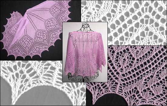 Gestricktes Halbrundtuch *Paeonia* mit einem floralen Muster und schönen Strickspitzen. Das Tuch wird von der Mitte aus gestrickt. Strickanleitung mit Strickschrift.