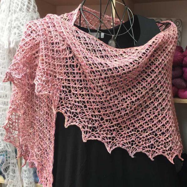 Ein hübsches Tuch, mit einem einprägsamen Muster, das sich relativ flott wegstricken lässt.