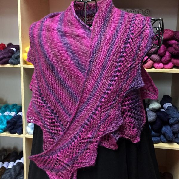 Ein schönes Tuch mit effektvoller, außergewöhnlicher Konstruktion, super gut geeignet für lange Farbverläufe und abwechslungsreich zu stricken. Ich hatte ein Einzelknäuel (400 m) einer schönen Wolle in Sockenwollstärke, aus einer Linie, die nicht mehr nachkaufbar ist, und brauchte daher das geeignete Projekt, bei dem ein Knäuel ausreicht. PaintedElly hat diese Ansprüche voll und ganz erfüllt :)